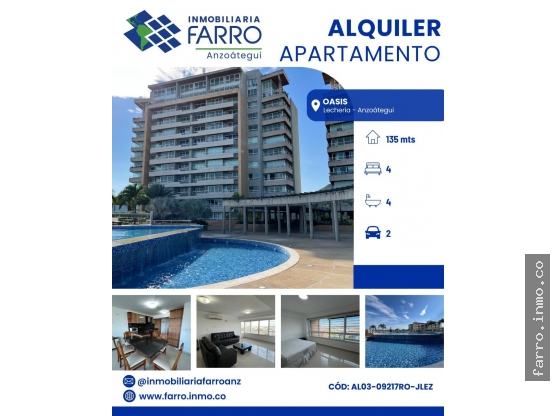 Ofrece en ALQUILER, acogedor Apartamento ubicado en el Conjunto Residencial OASIS, Piso 6 con una superficie de 135 m², distribuido de la siguiente manera: