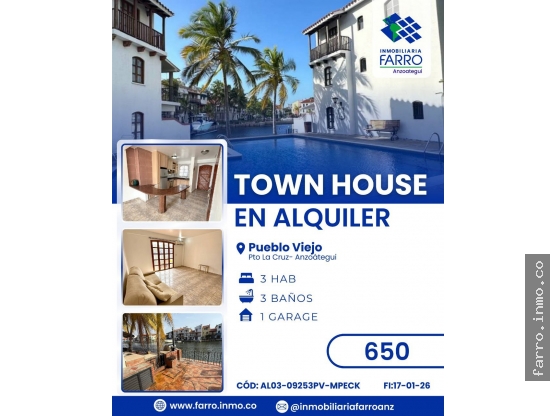 Dรณlares AmericanosALQUILA Town house ubicado en ๐ฃ๐จ๐๐๐๐ข ๐ฉ๐๐๐๐ข - ๐๐ฆ๐๐ ๐๐ฅ๐๐ง๐. Con una superficie de 115m², de 3 niveles, distribuido en PB, área de cocina equipada, desayunador, amplia sala, terraza con salida al canal, 1 ½ baño, •Primer nivel 2 habitaciones con sus closet, una de ellas con balcón y 1 baño compartido,