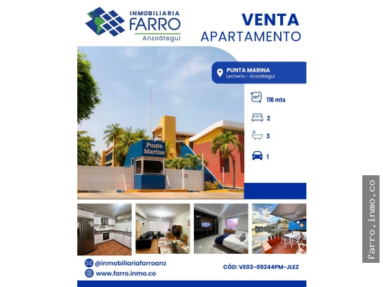 Ofrece en VENTA Apartamento Duplex, ubicado en el Conjunto Residencial PUNTA MARINA, en Planta Baja con una superficie de 116 m², distribuido de la siguiente manera: