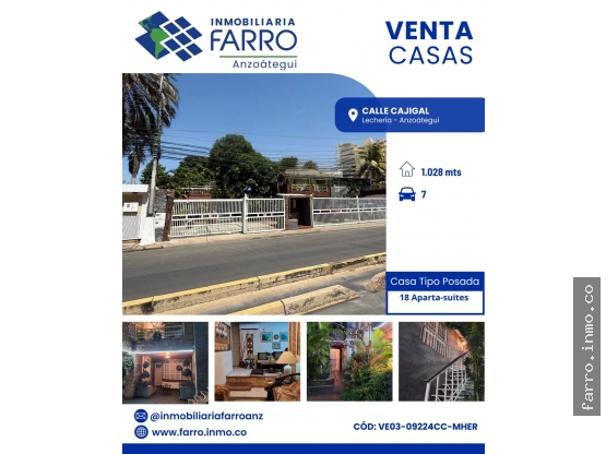 VENDE 2 Hermosas Casas unidas tipo posada con estilo rustico-campestre, sobre un terreno de 800 mt2 y una construccion 1028 mt2. Aprox. Cuenta con:
