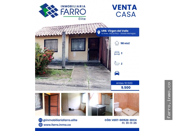 Dólares Americanosfarro.inmo.co Vende espaciosa y linda casa ubicada en la calle principal del Sector la Línea, Parroquia las Cocuizas. Urb privada VIRGEN DEL VALLE, Disfrute de la tranquilidad de un conjunto cerrado con la comodidad de estar a solo 15 minutos del centro de la ciudad de Maturín.