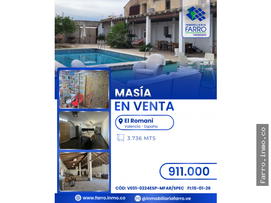 SE VENDE MASÍA EN VALENCIA, ESPAÑA VE01-0224ESP-MFAR/SPEC