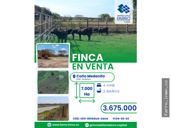 Finca "Los Corrales" - Una extraordinaria oportunidad de inversión agropecuaria. Ubicada estratégicamente con una superficie total de 7.000 Hectáreas, esta propiedad destaca por su capacidad operativa inmediata. Cuenta con un robusto sistema de riego por gravedad, amplias zonas de pasto artificial, infraestructura completa para personal y maquinaria, y un inventario ganadero de alta calidad. Ideal para explotación ganadera y agrícola a gran escala.