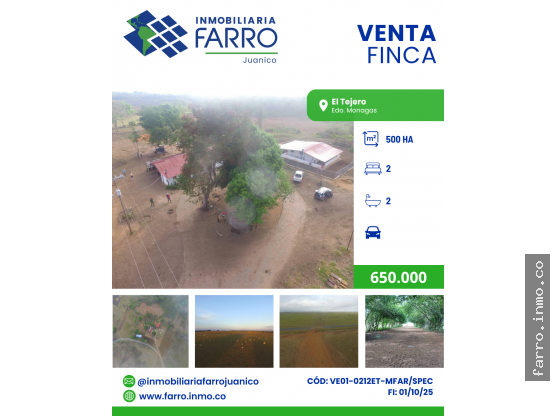 Dólares AmericanosFARRO.INMO.CO VENDE FINCA EN EL SECTOR TEJERO DEL ESTADO MONAGAS DE 980 HECTÁREAS