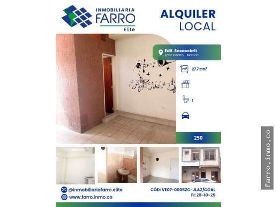 Se alquila excelente local comercial/oficina de 27.7 m² ubicado en el Edificio Secacobrit, en pleno corazón del centro de Maturín.