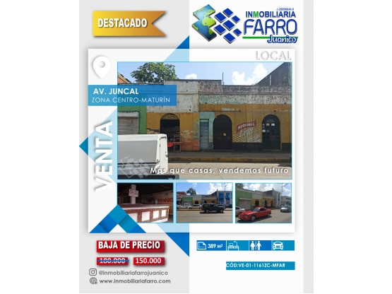 Inmobiliaria FARRO vende local en plena Av Juncal a la altura de la Av Rivas de 389 M , ubicación estratégica para negocio por su excelente punto comercial.
