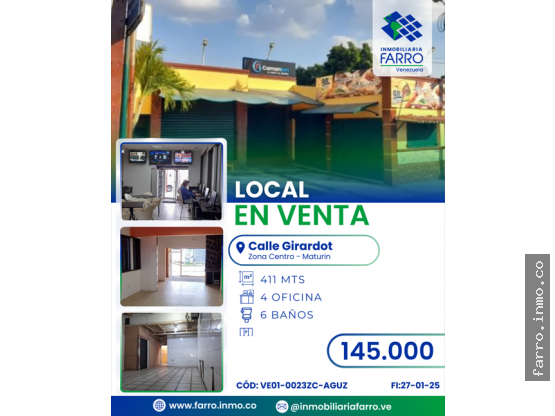 SE VENDE LOCAL EN LA CALLE GIRARDOT VE01-0023ZC-AGUZ