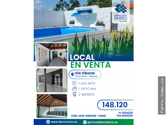Dólares AmericanosFARRO.INMO.CO VENDE LOCAL CON LAS SIGUIENTES CARACTERÍSTICAS: