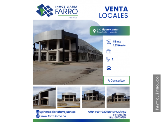 FARRO.INMO.CO VENDE LOCALES EN EL CENTRO COMERCIAL TIPURO CENTER DESDE 82 M2 A 1.634 M2 UBICADO EN PLENA AVENIDA ALIRIO UGARTE PELAYO DE LA CIUDAD DE MATURÍN DEL ESTADO MONAGAS EN VENEZUELA DESDE CON FINANCIAMIENTO DE 30 MESES DANDO TAN SOLO EL 30% DE INICIAL