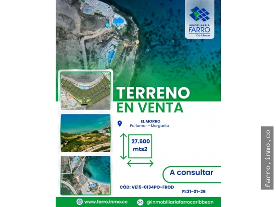 VENDE  Parcela de Terreno en la Isla de Margarita, , constante de  27.500 mtr2 Ubicado en el sector bella vista .